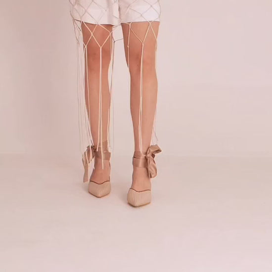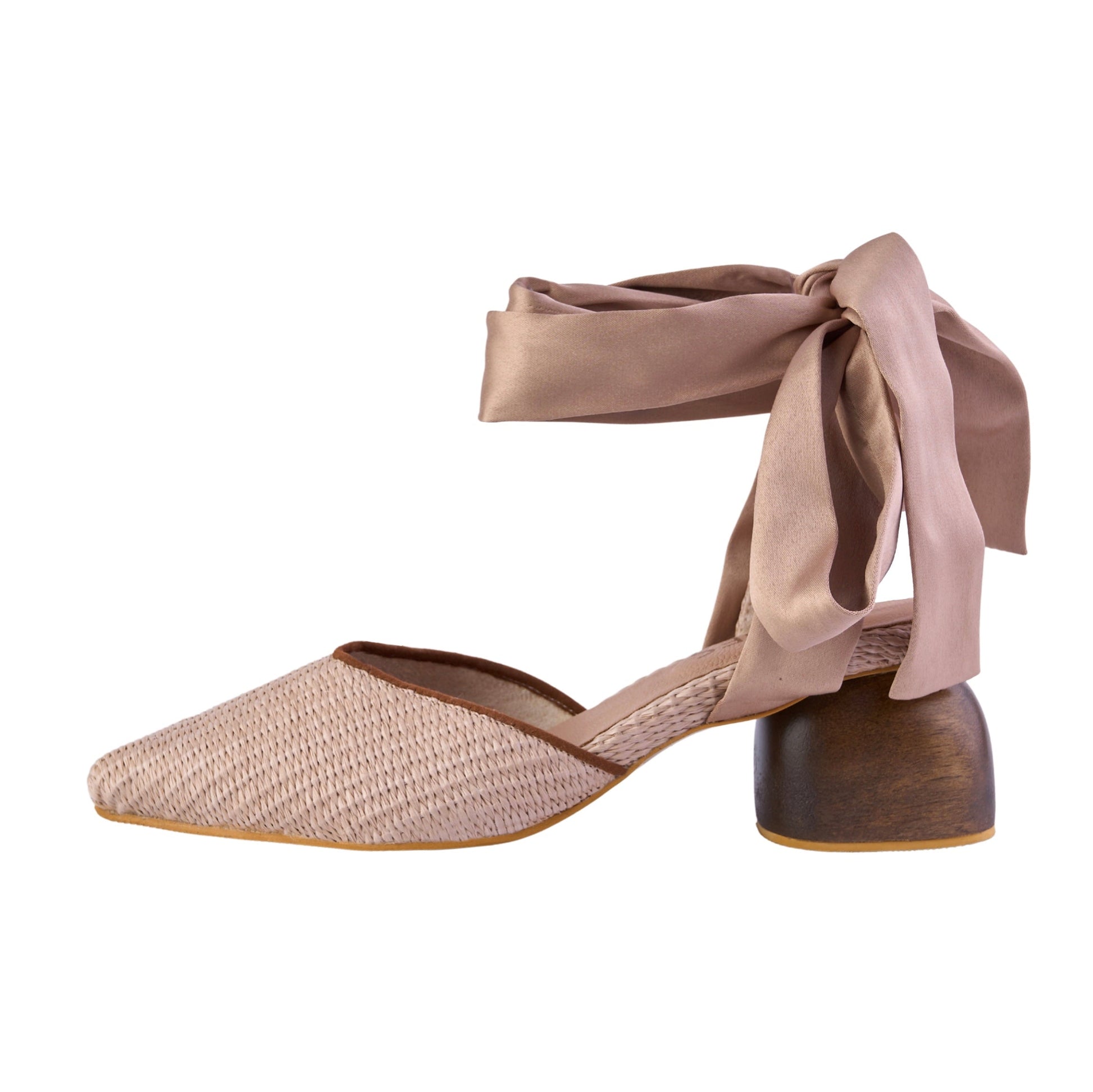 Regina heels. Their raffia texture finish with a delicate suede trim that is soft to the touch, and the wooden heel carved by Luis Carlos, a craftsman from Sampués. Every step you take in them is a story told in threads, texture, and elegance.