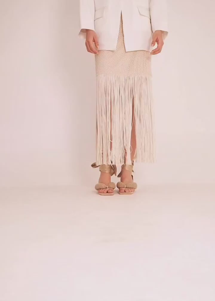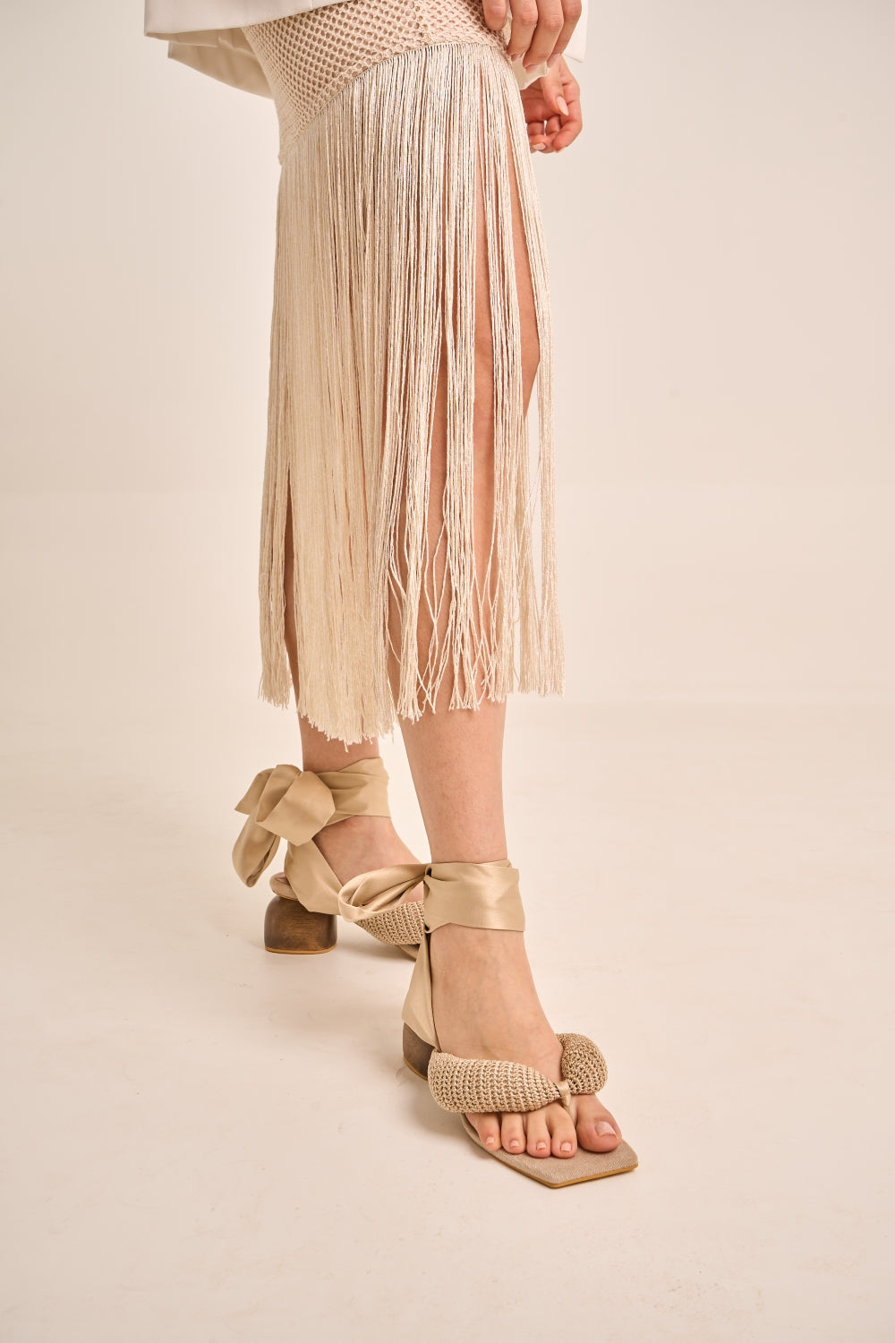 Adelina heels are a tribute to the art of patient weaving. Their gold thread finish was crafted by Dilia, a weaver from Sincelejo, and the wooden heel was carved by Luis Carlos, a craftsman from Sampués - Colombia. Every step you take in them is a story told in threads, texture, and elegance.